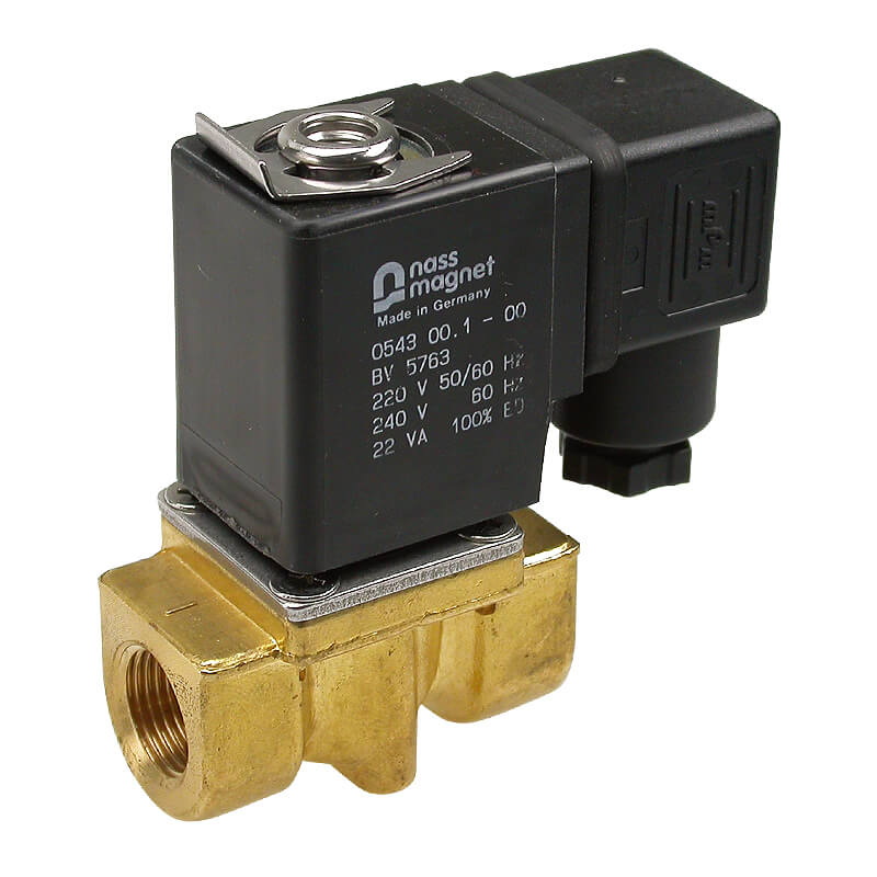 Dövme pirinç gövde, 3/2 yollu N.C., su, hava, buhar, gaz, hafif yağ için. Port boyutu: 1/8", 1/4", 3/8", 1/2".